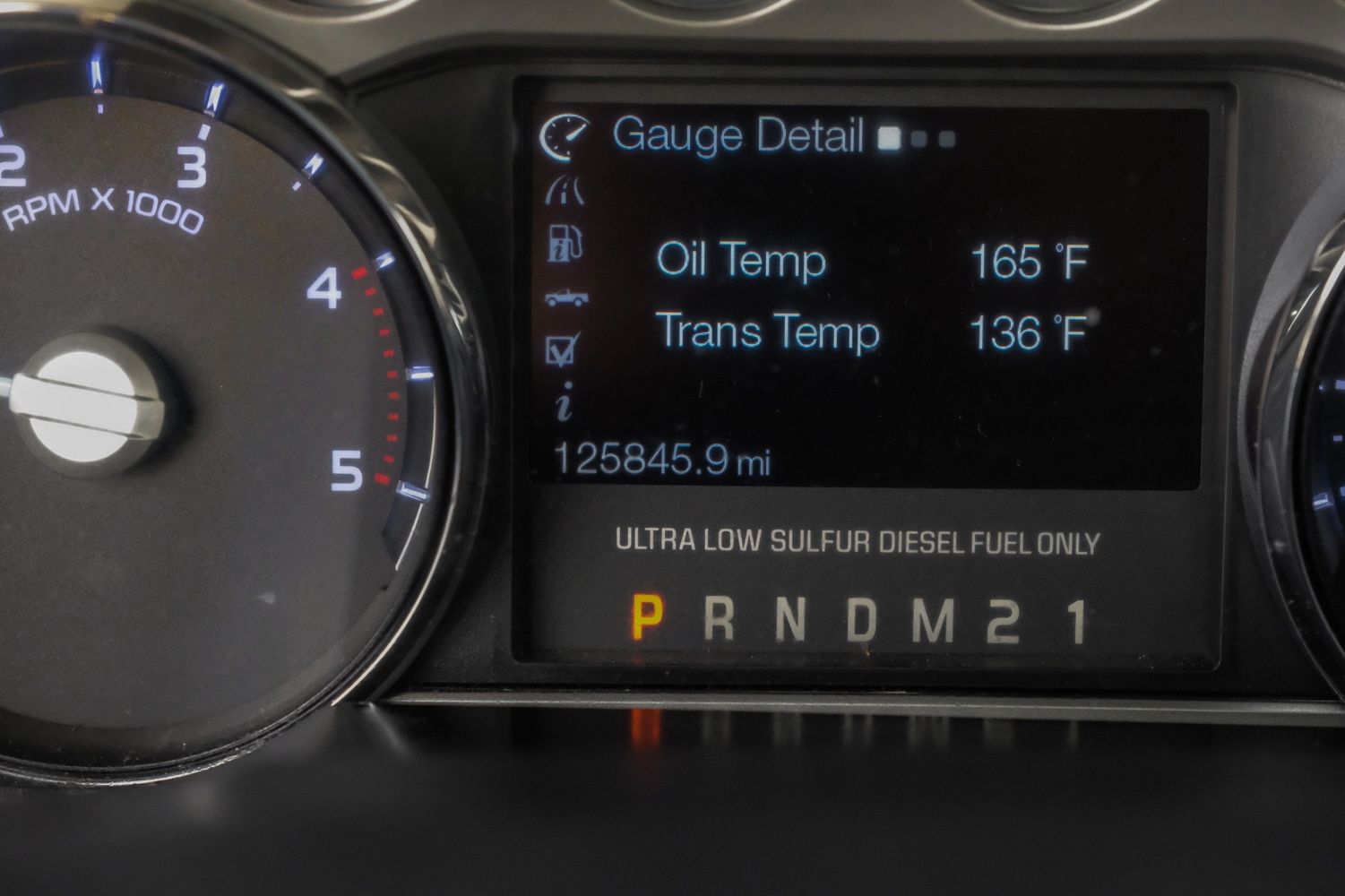Low level warnings: Low level warning for fuel, brake fluid and diesel exhaust fluid (DEF)
