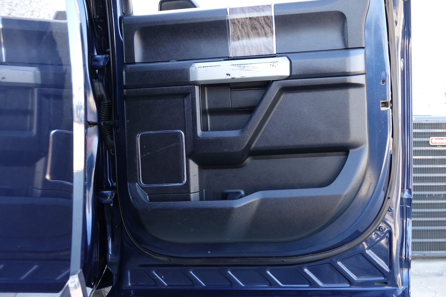 Door panel insert: Simulated wood and metal-look door panel insert