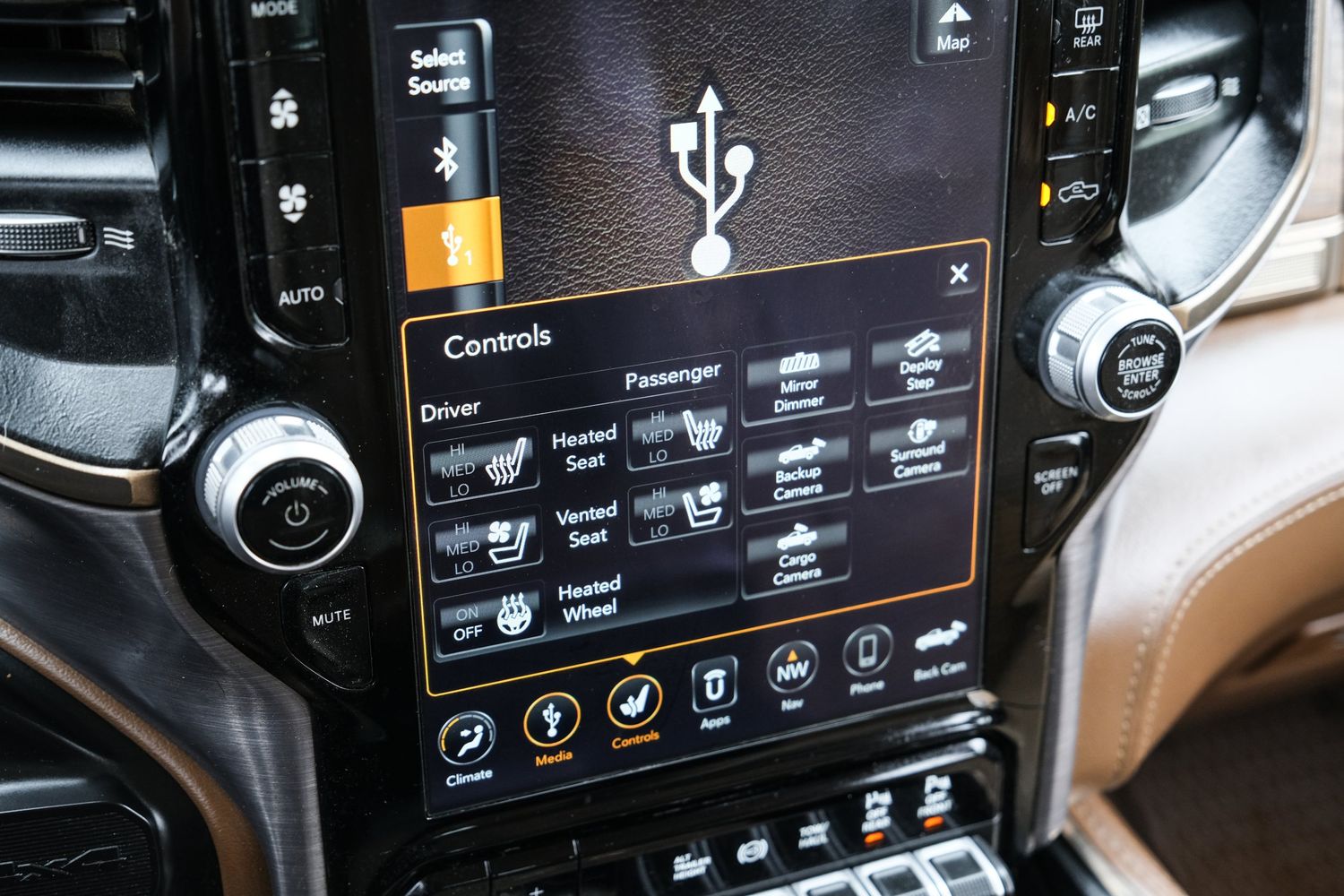 Steering wheel material: Leather and genuine wood steering wheel